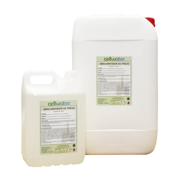Produto solúvel em água, especialmente indicado para limpar e dar brilho aos pneus.